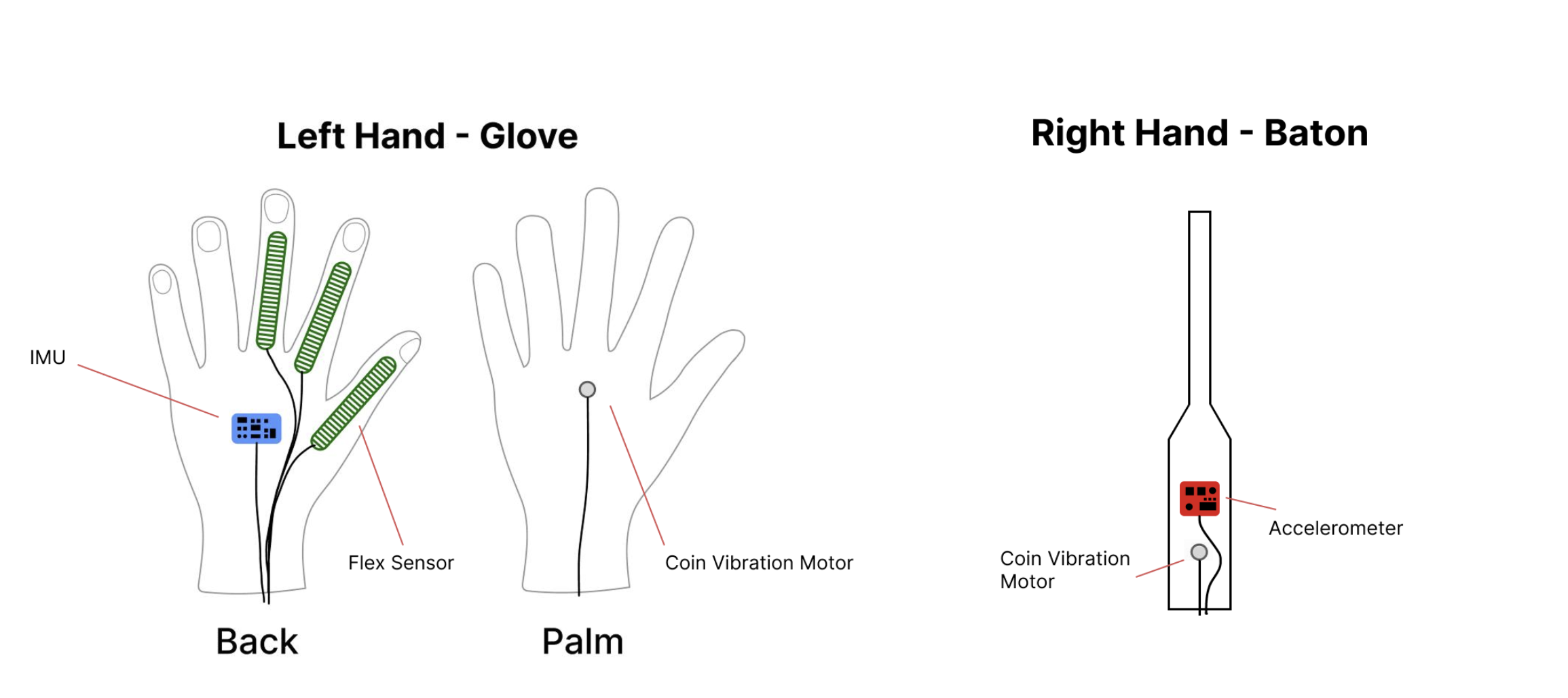 - A glove with flex sensors, an IMU, and a vibration motor (check hardware/glove/)